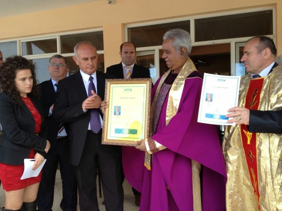 O τίτλος επίτιμου μέλους της Διπλωματικής Αποστολής Ειρήνης και Ευημερίας δόθηκε χθες από τον επίτιμο πρόεδρο της διαπιστευμένης Διπλωματικής ΑποστολήςDMPP από ΟΗΕ ,ΕΕ, ΗΠΑ και παγκόσμιου φήμης πρέσβη ειρήνης τον Ινδό καθηγητή Dr. Madhu Krishan και τον Διοικητή , πρέσβη Ειρήνης Dr. Shefki Hysa.